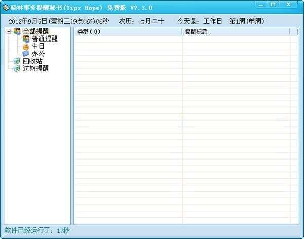1、多种分类的提醒模式,可以提醒每隔几分钟、几小时、几天、几个月、几年、网络连通断开和指定时间的事务,甚至可以提醒农历的事务;
