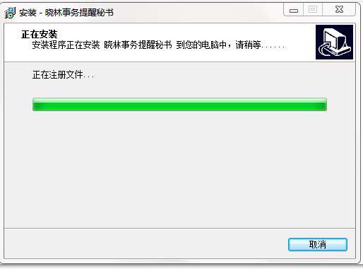 9.晓林事务提醒秘书软件正在安装,请耐心等待,稍后点击完成即可