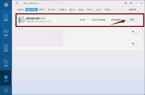 方法二:安装并打开360软件管家,在卸载选项的列表中找到CAD图纸比较软件,点击卸载即可
