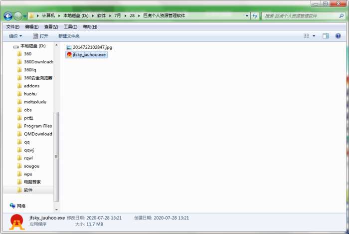 2.解压巨虎个人资源管理软件,运行“EXE.文件”