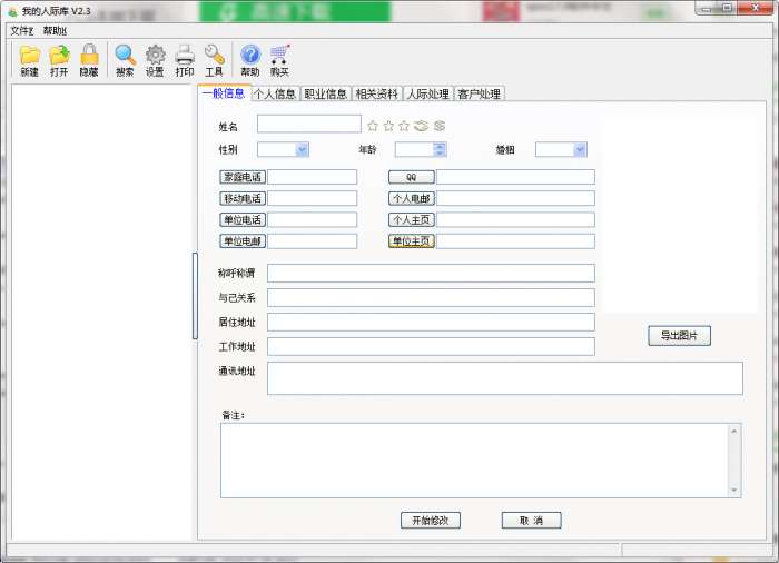 我的人际库官方版是一款实用的信息数据管理软件。我的人际库最新版采用安全性极高的易数据库用于存放人际资料数据。我的人际库官方版能很好的帮助你管理你的通讯录,除具有通讯录功能外,还能方便的梳理人际网络、管理各种人际资料(包括文字、图片、音视频等)、进行人际分析处理以及商业客户管理。