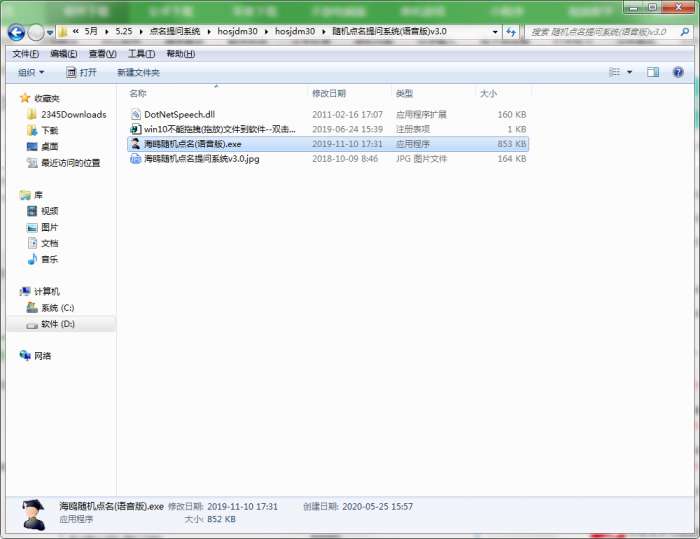 2.解压海鸥随机点名提问系统软件,运行“EXE.文件”