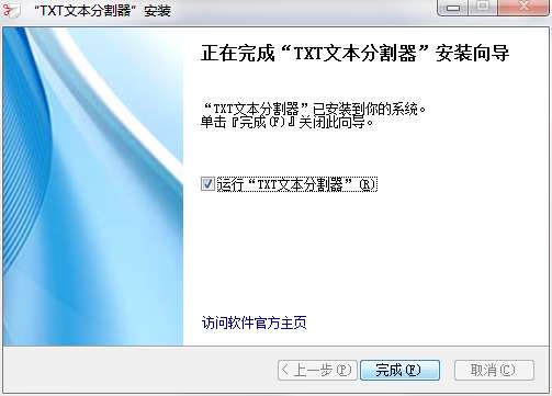 8.点击完成,TXT文本分割器软件安装成功