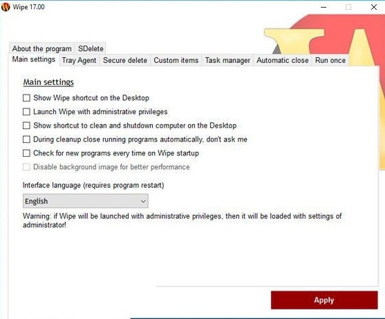 2、程序设置:您可以自定义此软件的许多功能。例如,你可以设置安全选项来防止恢复已删除的文件。