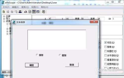 3、直接在此界面上拖动控件,调整控件,修改控件后,保存。关闭eXeScope。然后运行修改过的2.exe。奇迹出现了,程序就已经修改好了。