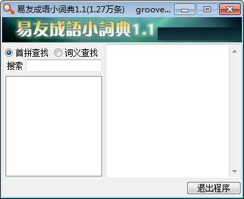 本小词典软件包括词义,拼音,出自以及举例项目 ,易友成语小词典软件为绿色免费软件,主执行exe程序只有70k,共收录1.27万条成语条目