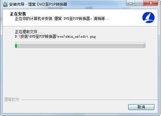 狸窝DVD至PSP转换器官方版正在安装,耐心等待一下