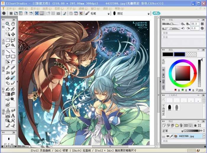 illuststudio官方版是一款专业的绘画软件。illuststudio最新版有自动控制颜色扩散功能,上色时要求颜色不超过轮廓线,以往软件都要先制作一个选区。illuststudio官方版支持抖动修正,可以自动在线条上加入出笔和收笔时的笔锋,能在大范围内修正数位板的抖动。