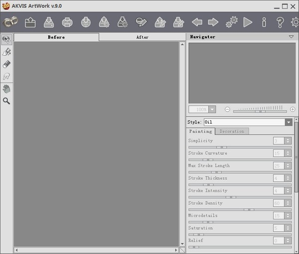 1、进入AKVIS ArtWork的主界面,这时用户可以看到AKVIS ArtWork的主界面非常的简洁,很酷的XP很色界面风格