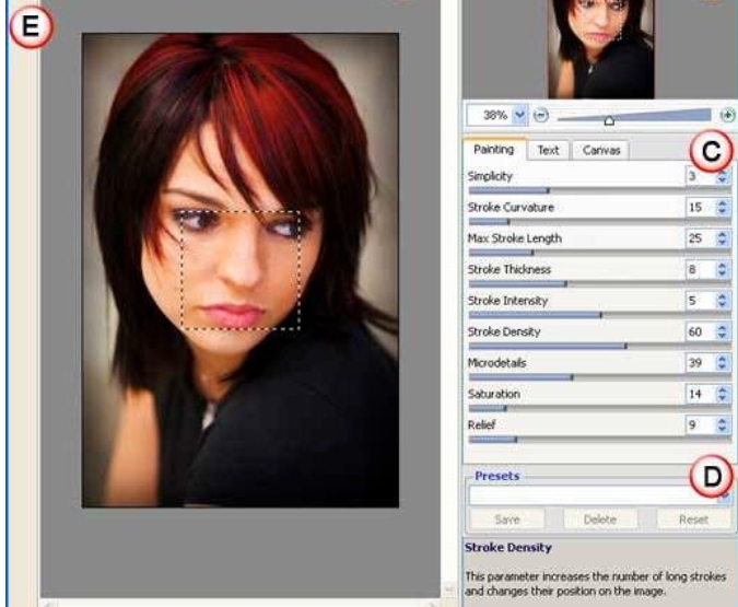 2、AKVIS ArtWork为用户提供了四种绘画风格:油画、漫画、钢笔及其它效果;调整参数你可以创建出不同风格的油画效果