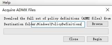 修改组策略设置开发者提到,在Windows家庭版中使用时需要通过Help - Acquire ADMX Files来下载完整的模板文件。