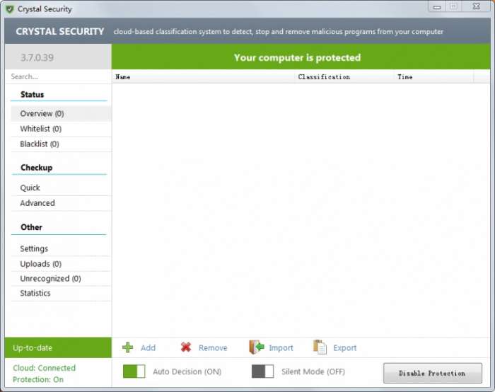 基于云的恶意软件检测、易于使用的、用户友好的界面,自动/手动更新,没有安装,Crystal Security免费版支持多种语言和许多其他功能。