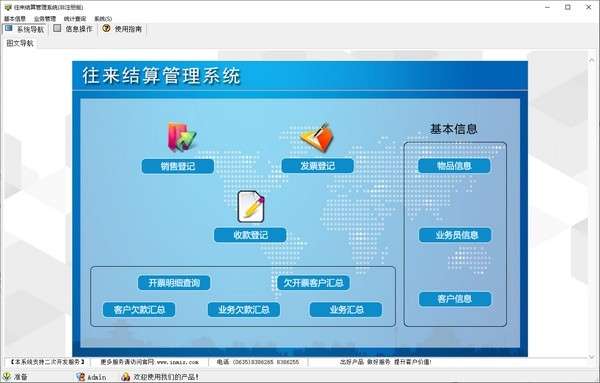 《往来结算管理系统》是一款针对各个企业所设计的一款软件,它具有销售登记、发票登记、收款登记,开票明细查询,欠客户开票汇总,客户欠款汇总,业务欠款汇总,业务汇总等功能,是一款有效的管理软件
