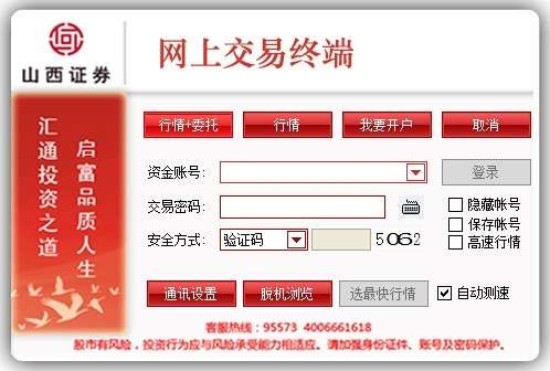 山西证券网上交易终端是集信息、市场、交易于一体的强大在线投资和金融工具。其交易功能包括:支持股票、沪港通、开放式基金、融资融券、个股期权、股份转让、报价回购、现金融资等业务功能,您可以免费下载。