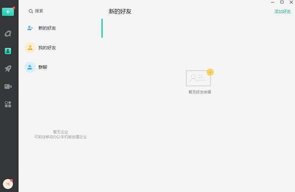 点击主导航栏 “+”图标,发起群聊,搜索或选择一个联系人,点击确定,即可进入二人会话窗口。