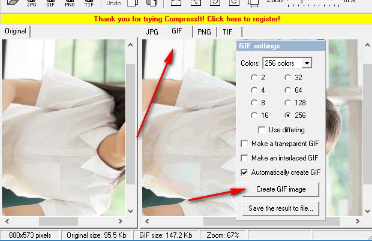 4、点击GIF可以设置多种压缩的类型