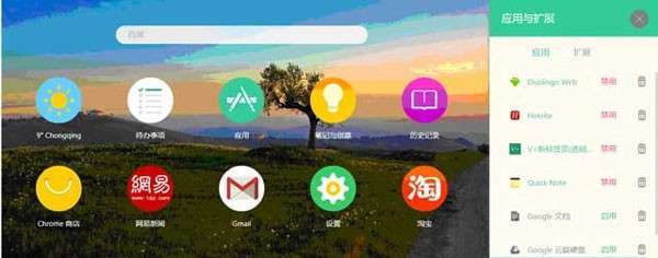 7、点击新标签页中的应用,就可以轻松管理你的应用了,禁用开启或者删除一些chrome扩展。如图所示: