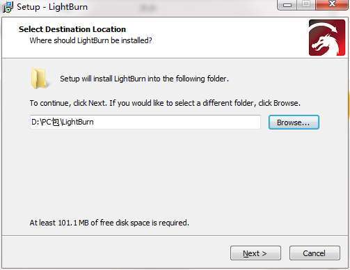 1、双击打开,进入LightBurn软件界面,选择安装位置,点击下一步。
