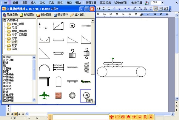 (6)提供了类似于ACDSee看图软件的内部素材外部素材功能,可以直接从素材库将素材拖到WORD文档中,并可实现鼠标精确定位!是目前最直观方便的物理做图工具,同时可以方便地对素材库中的素材进行增删排序等管理操作,而且可以到我们网站下载更新的素材库!