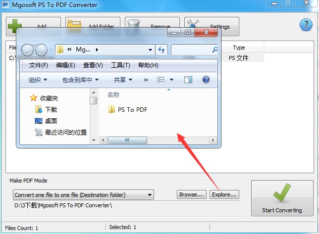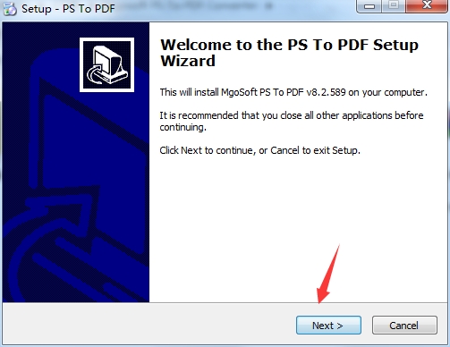 1、在PC下载网下载Mgosoft PS To PDF Converter官方版软件包,解压缩找到ps-to-pdf.exe程序双击开始安装