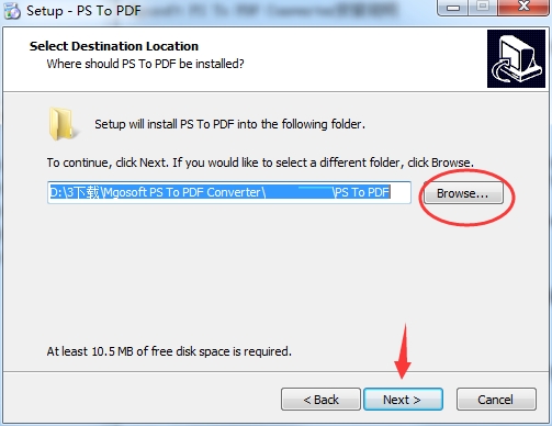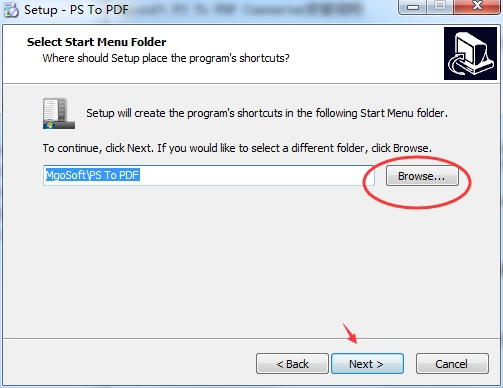 3、软件默认安装在C:Program Files (x86)MgoSoftPS To PDF,点击“Next>”
