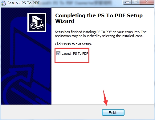 1、点击我们电脑桌面的PS To PDF快捷方式打开软件