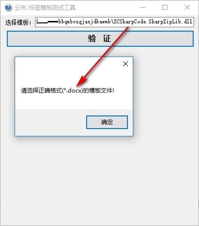 5、如果您选择的模板格式不正确,会出现提示的窗口;