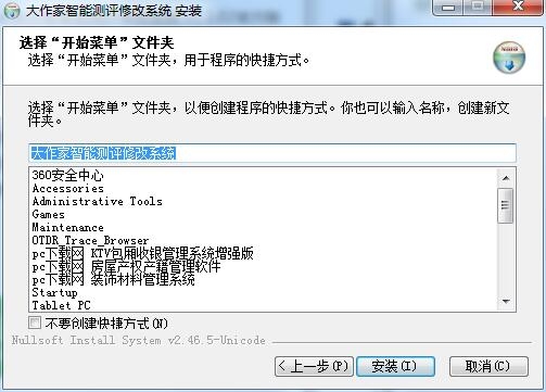 5、对开始菜单选择,默认“大作家智能测评修改系统”,点击安装;