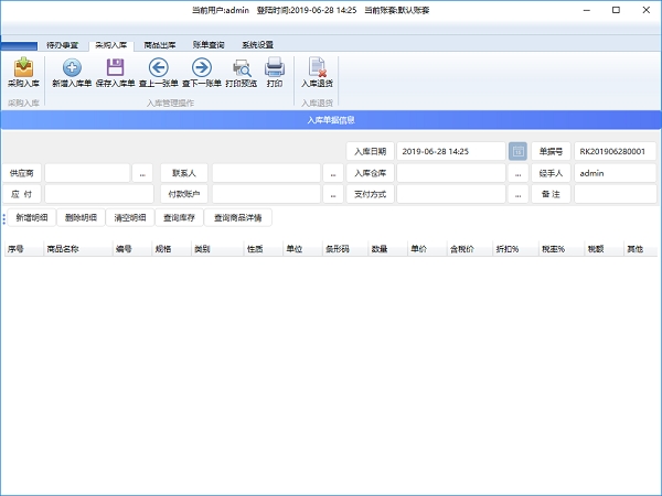 4、提示采购功能,您可以在软件姐们查看采购商品的信息,可以在软件录入新的明细内容