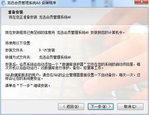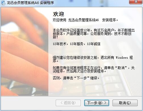 5、龙迅会员管理系统已经准备好了进行安装,点击下一步安装;