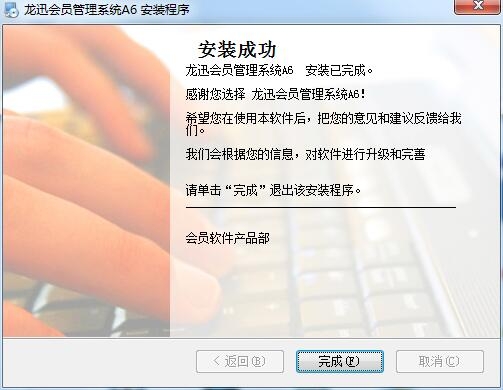 7、龙迅会员管理系统已经安装完成,点击完成;