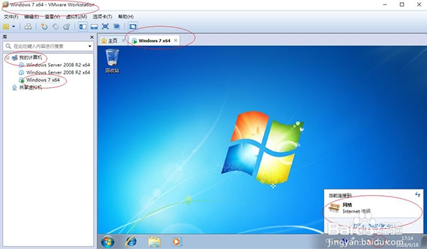 1、点击vmware workstation程序窗口,展开左侧树形目录结构,点击“Windows 7 x64”项