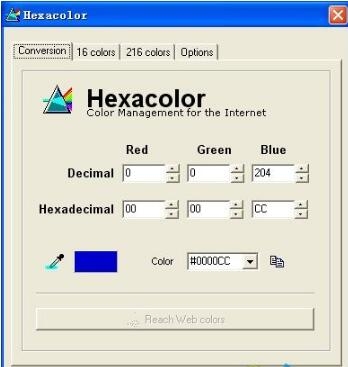 是一个用于Internet的颜色管理软件,可以从调色板选取颜色并得到十进制和十六进制值,输入十进制和十六进制值也可以得到相应的颜色,也可以从屏幕拾取颜色。