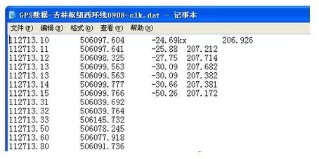 2、在处理GPS RTK采集的断面数据时,操作流程和前面处理全站仪测量断面数据基本一致,就是将先点击“读入全站仪测量数据”按钮换成点击“读入GPS测量断面数据”。最后如果要生成*.dxf格式的图形数据文件,必须先读入高程数据。 导入的GPS RTK采集的断面数据格式如下: