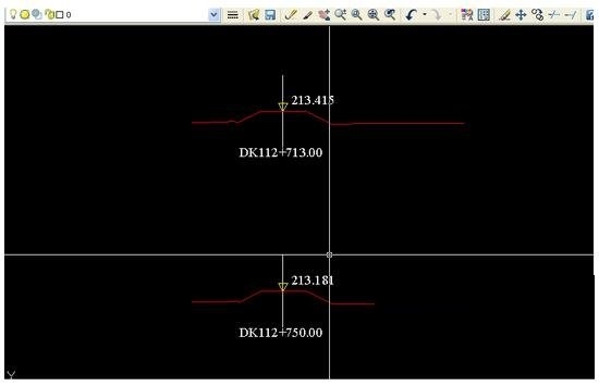 3、如果已经编辑好的断面数据,只需点击“读入中桩高程数据” 按钮和其“读入既有断面数据”按钮,导入相关数据,最后点击”生成CAD格式断面线图”,就可获得*.dxf格式的图形数据文件,其中既有的断面数据格式如下