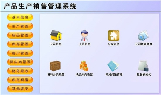 产品生产销售管理系统中文版是款功能十分强劲实用且专门服务于中小型产品生产公司管理材料与成品销售管理,产品生产销售管理系统中文版内置丰富的功能,其软件主要包括生产管理、成品管理、库存管理、客户管理等功能,产品生产销售管理系统一定程度上,可以帮助用户提高工作效率。