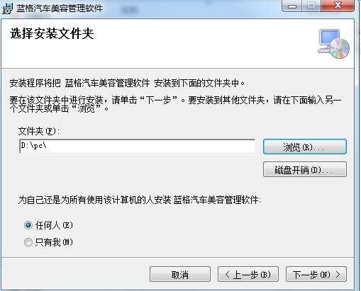 3、选择安装文件夹,默认文件夹“D:蓝格软件”,点击下一步;