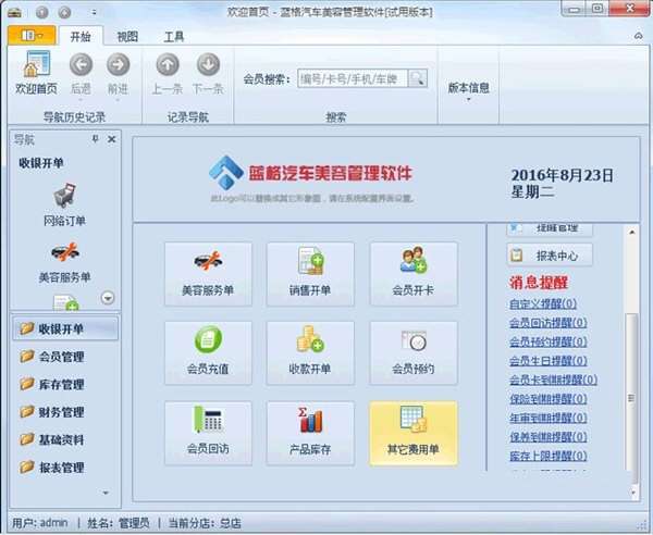 蓝格汽车美容管理软件功能