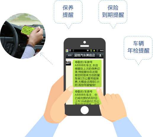 管理员可以在汽车养护店管理软件上设置各样的提醒信息,最基本的保养提醒,保险到期提醒,车辆年检提醒,软件不但会自动发送短信给客户,也可以在各类的自定义提醒。