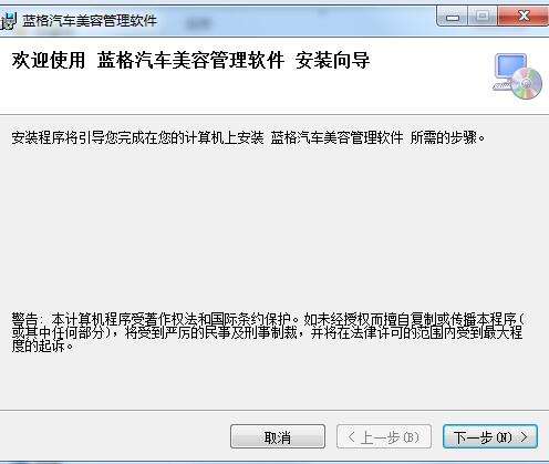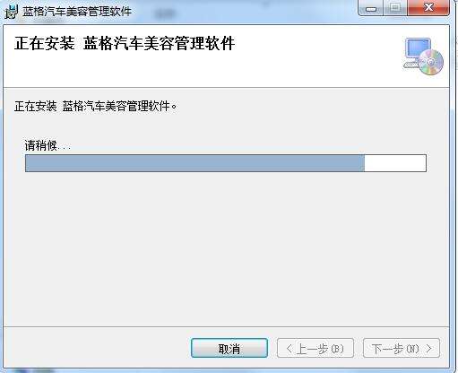5、蓝格汽车美容管理软件正在进行快速的安装中,请耐心等待............
