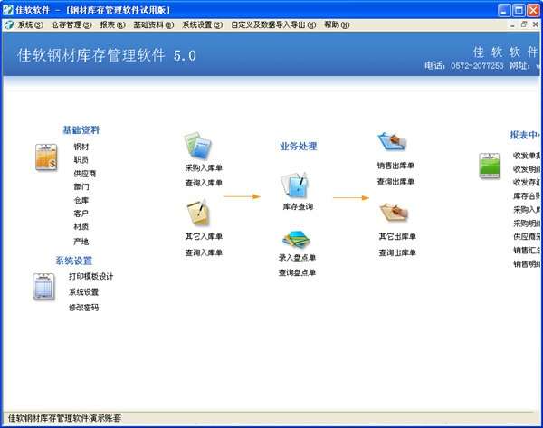 佳软钢材库存管理软件中文版是款受到用户喜爱且功能强大的钢材库存管理工具,佳软钢材库存管理软件中文版灵活实用,功能结构清晰,且佳软钢材库存管理软件根据钢材流通企业的特点,加入了材质、产地、件、支、重量、批次等信息,让用户更加清楚地掌握每一个仓库中的每一件钢材的信息,帮助用户准确分析库存存量,减少资金占用,十分的高效专业。