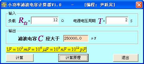 小功率滤波电容计算器软件功能