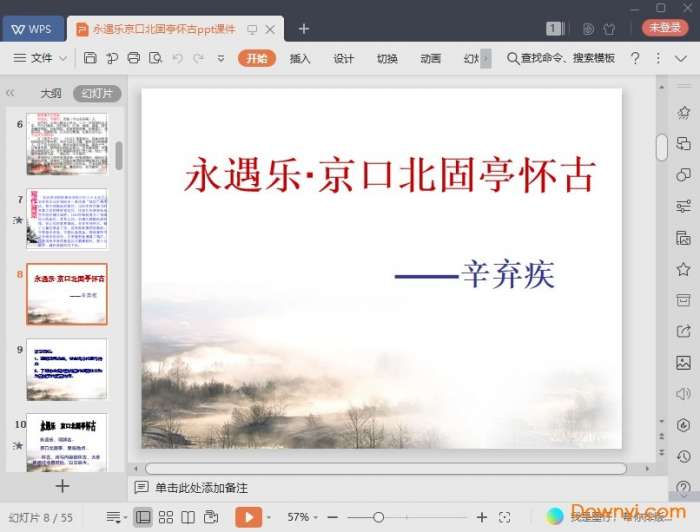 永遇乐京口北固亭怀古ppt课件为你提供了非常不错的学习内容,这款课件甚至可以在课堂上使用,让老师的讲课更加的细致。如果你需要更多的免费课件,欢迎来体验!