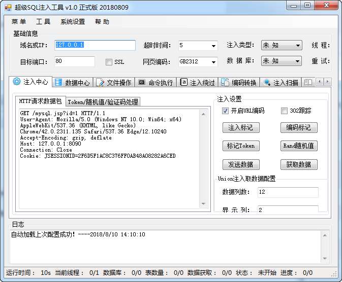 万能sql注入工具是用来进行sql注入猜解的工具,主要针对一些没有错误返回信息的网站的表结构猜解(当然,如果有错误返回这个工具也适用,只是没必要使用这个工具了,因为有更好更快捷的工具),尤其是java+oracle,php+mysql以及一部分asp+sqlserver的网站