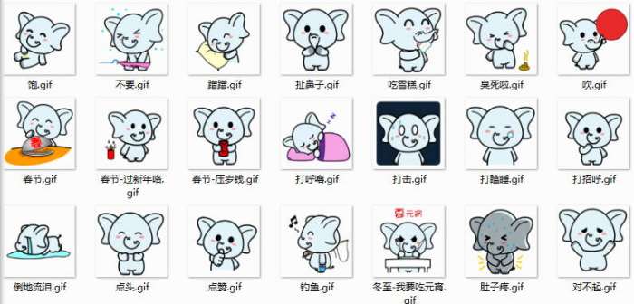村村象qq表情包第二季,此套表情里的部分表情第一套相同。村村象的设定定位在“可爱”这个词上。村村象是一只可爱的小象,它的面容天真可爱,笑容天真无邪。小短手小短腿使得村村象在动作的时候常常会有一种“心有余而力不足”的感觉。生性呆萌的它,举手投足间给人一种可爱的感觉。翔通动漫村村象表情包包含饱、不要、蹭蹭、打招呼、倒地流泪等表情。