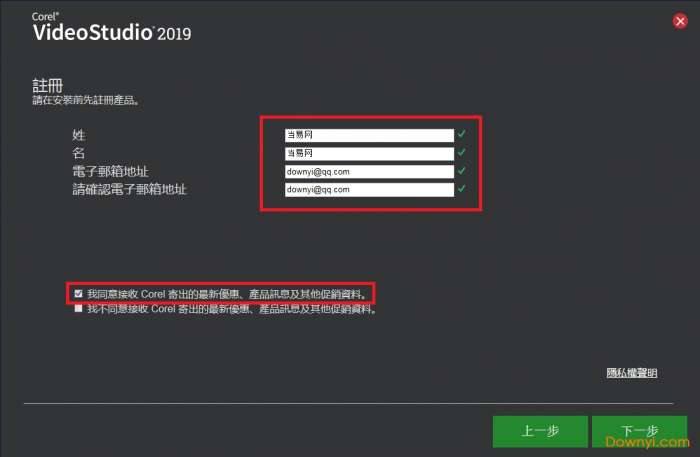 4、如图所示,输入注册信息,点击下一步