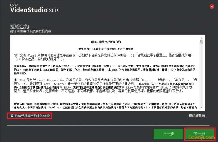 3、勾选我接受授权合约中的条款,点击下一步