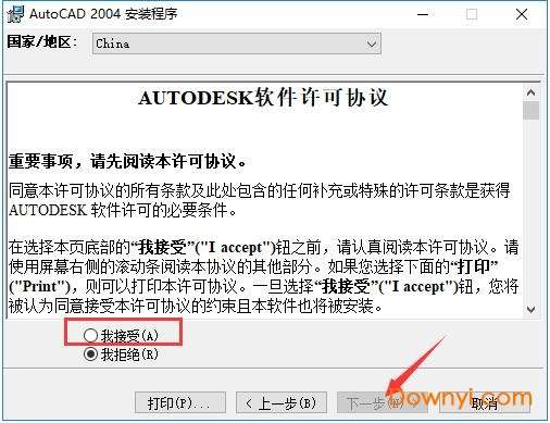 4、阅读软件相关许可协议,阅读完成后,如无异议的话则勾选左下方的“我接受”,然后点击“下一步”。