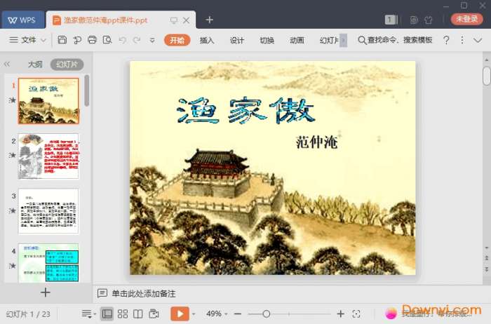 渔家傲秋思优秀课件为同学们学习故事中的韵味提供了引导的作用,无论是解读诗词还是讲解诗词大意这款ppt中都能为你限显示。软件使用简单方便,如果你想体验这款软件那就来体验吧!