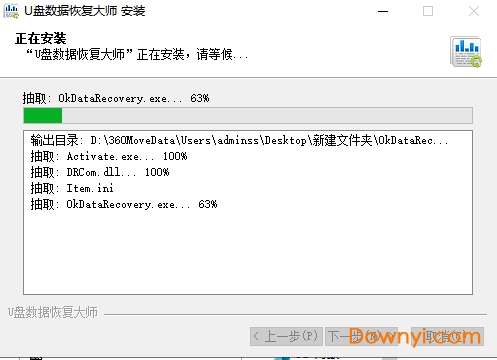 3、进入到u盘数据恢复大师正在安装界面,如下图所示,软件正在安装,我们需要耐心等待安装进度条完成。小编亲测安装速度是很快的,只需等一小会就可以完成了。